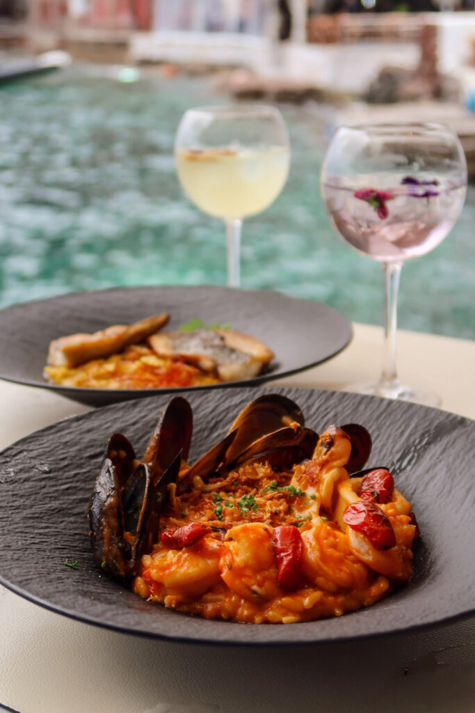 This is one of those things Santorini just does better than anywhere else. Dining here isn’t just about the food, it’s the whole experience. You’re sitting on the edge of a cliff, looking out over the caldera, and suddenly even a casual meal feels like a moment.