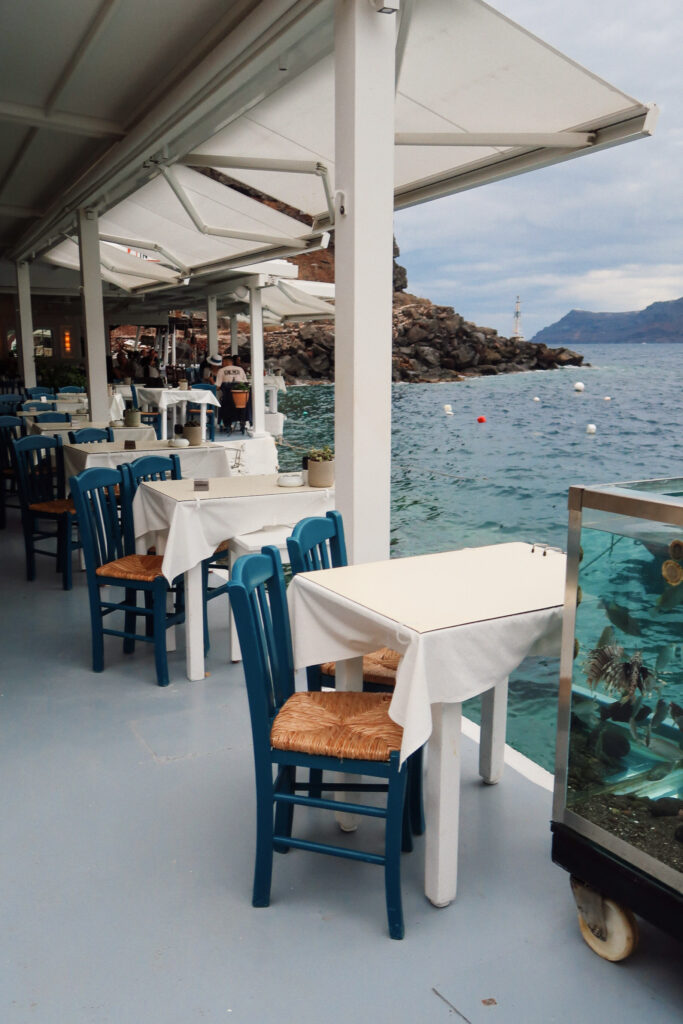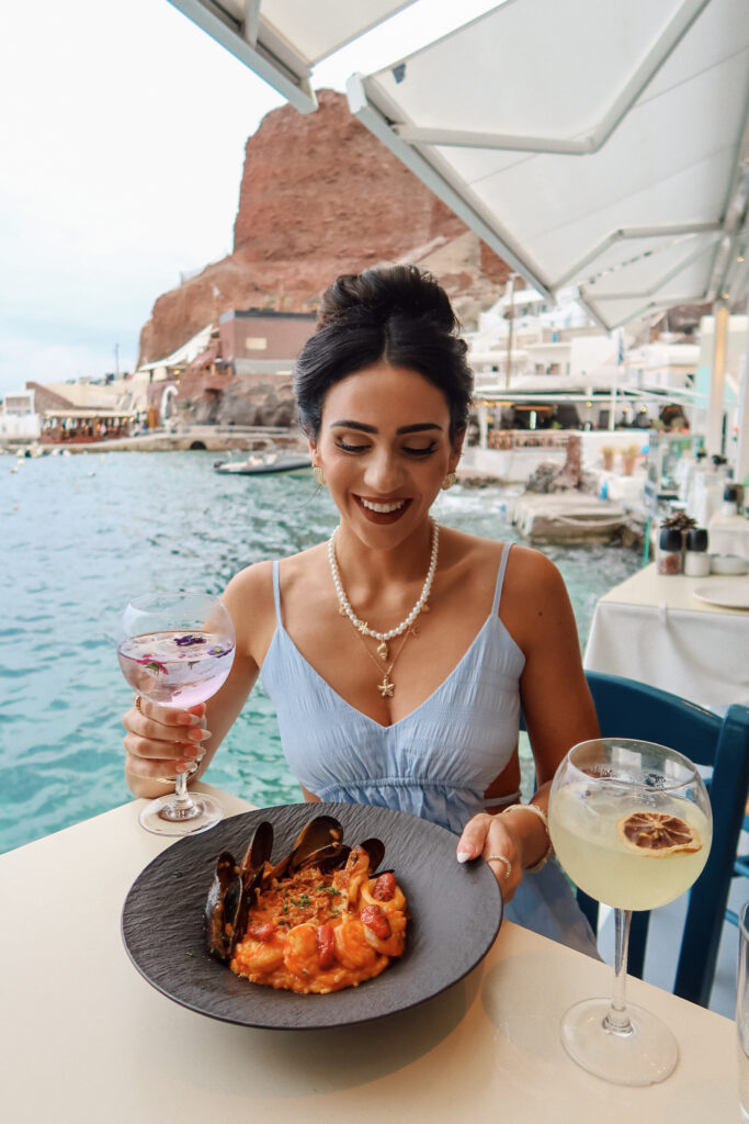 We had dinner at a spot called Sunset here, and I would absolutely recommend it. Sitting right by the water, especially as the sun starts to go down, felt so much more relaxed than the crowds up in Oia. It ended up being one of my favorite nights of the trip and one of those experiences that felt a little more personal and less rushed.