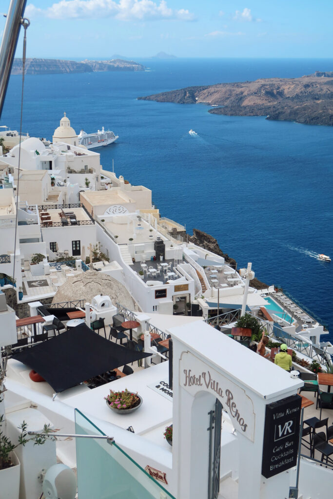 Speaking of cruise ships, I highly recommend actually visiting and staying in Santorini vs. just briefly stopping there while on a cruise. We could easily tell who was rushing through as a day tripper from a cruise ship by the way they had to carry all their belongings and could only enjoy during peak crowd hours. I personally love the early morning and evenings the most when it’s less busy due to the cruise ships not being there yet.