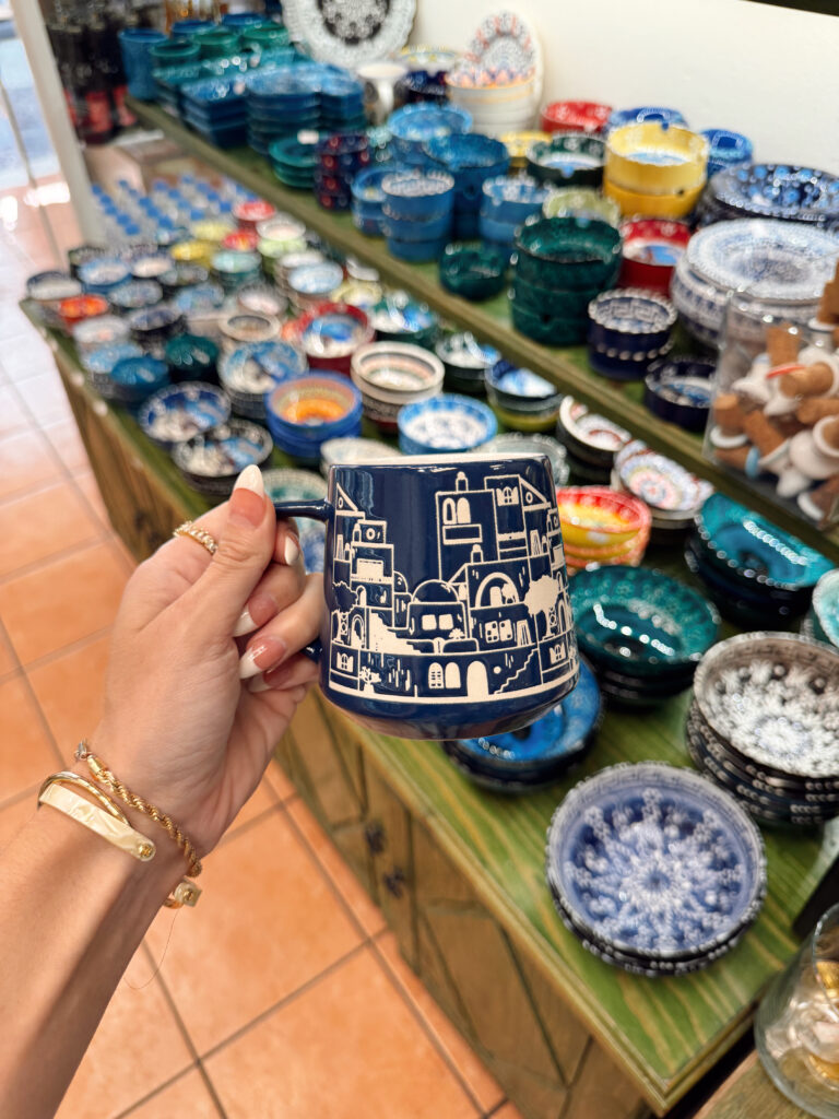 Fira ended up being one of my favorite spots to wander and shop. It has all those narrow, winding streets filled with boutiques, little souvenir shops, and local artisan spots, but it feels a bit more laid-back than Oia. And honestly, the prices were noticeably better, which was a nice surprise.