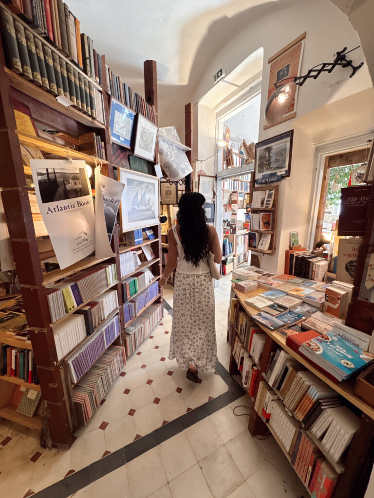 One spot that really stood out was Atlantis Books. It’s tucked away and feels completely different from everything else around it. Very cozy and just a cool vibe overall. We collect a travel book from every destination we visit, so this was the perfect place to find one, and they even stamped it for us, which made it feel extra special.