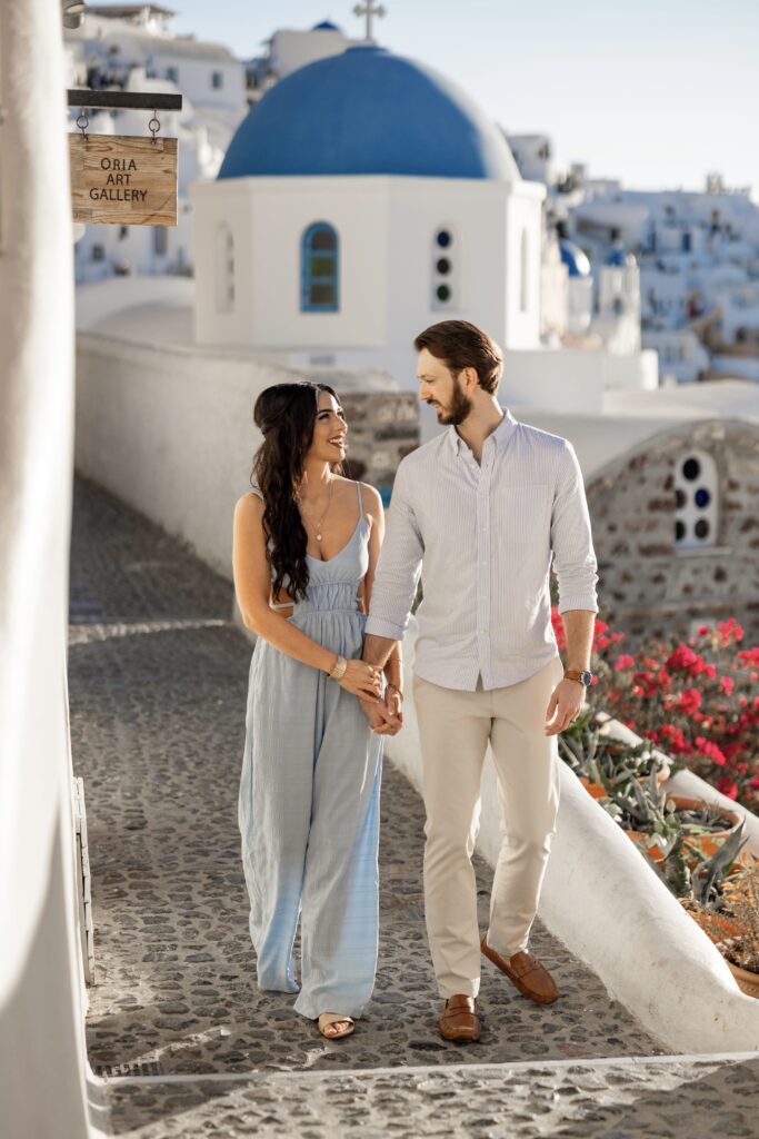 For a once-in-a-lifetime destination like Santorini, it felt like a no-brainer. We booked a sunrise photoshoot with @franko_photographer on Instagram, and he was amazing. We met super early and he took us around to all the best spots before the crowds rolled in. No lines, no waiting, just us and the views.