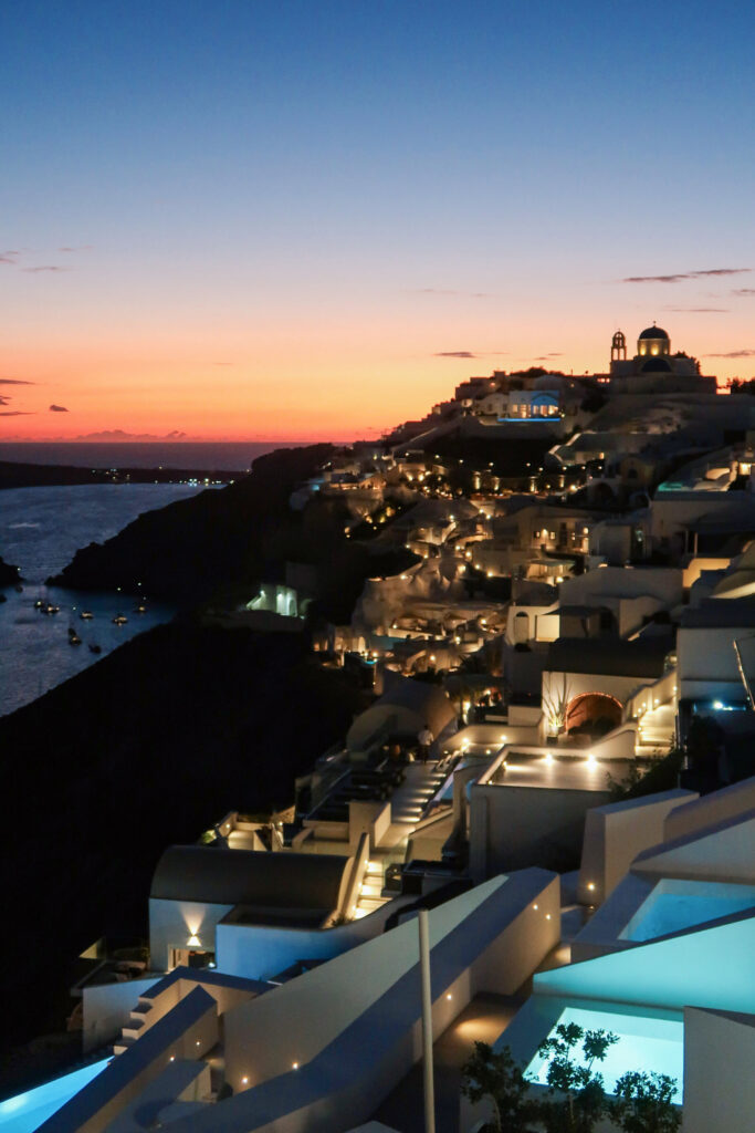 The village of Oia is the most popular area on the island, especially around sunset, so planning ahead makes a big difference. I’m not going to pretend it’s not worth it, because it absolutely is a major bucket list moment. It’s one of those moments you picture before you even book the trip. But I will say, it gets busy. Like, very busy. Especially if cruise ships are in port.
